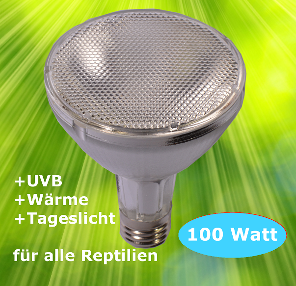 Die REPTILES EXPERT! UVB Metalldampflampen von Terrarienbau Adrian Rieser wurden in langen Versuchsreihen ausgiebig getestet. Diese Produkte von Terrarienbau Adrian Rieser zeichnen sich durch ideale UVB-Strahlung und sehr gute Tageslichtabgabe (6000k) mit einer guten Wärmeabstrahlung aus. Diese Kombination ist ideal für Reptilien und einfach für die Besitzer. Die UVB Strahlung ist höher als bei Energiesparlampen oder Leuchtstoffröhren und besonders für Wüstentiere bei einem Abstand von mehr als 30 cm im Terrarium geeignet. Neueste Technologie garantiert ein gleichmässiges UVB-Spektrum und lange Lebensdauer.